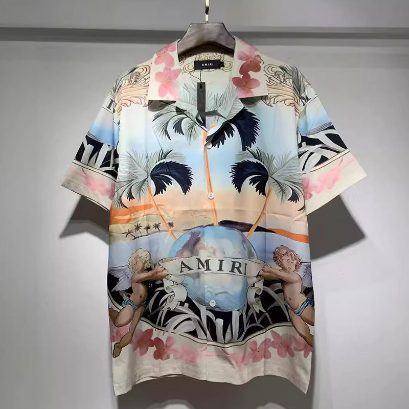 Convertible-Collar Printed Silk-Twill Shirt