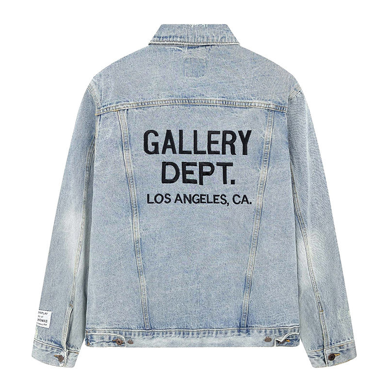letter embroidered washed denim Jacket